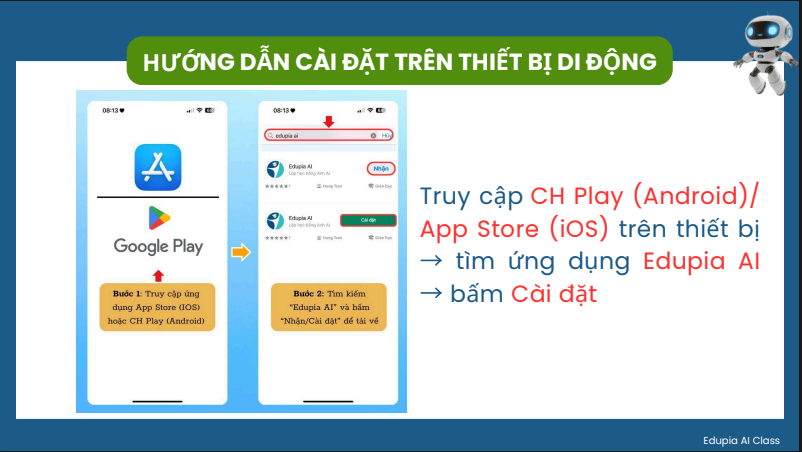 HƯỚNG DẪN HỌC TRÊN ỨNG DỤNG EDUPIA AI CLASS
